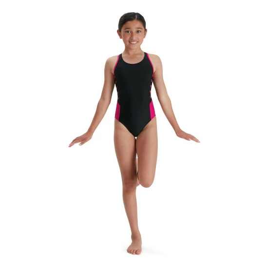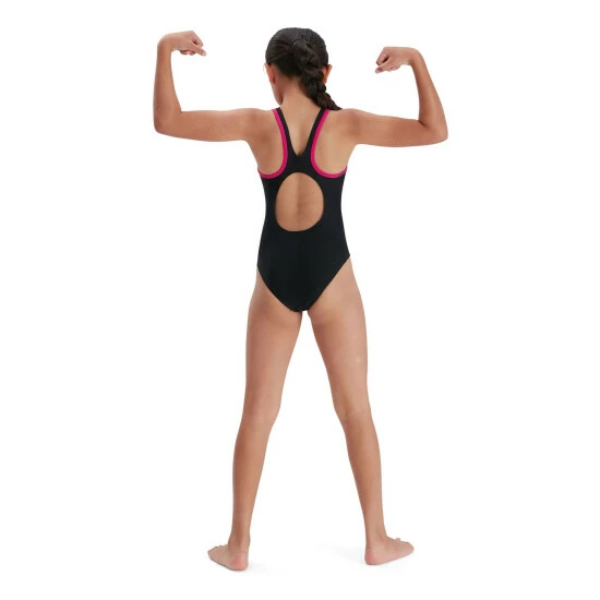Speedo Black Boom Logo Splice Muscleback Swimsuit