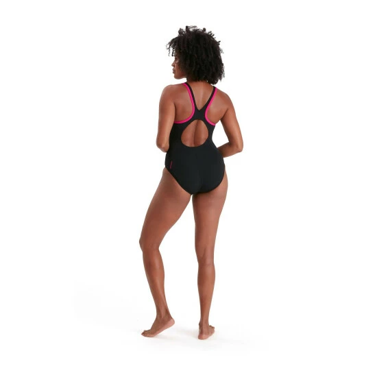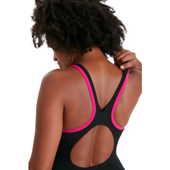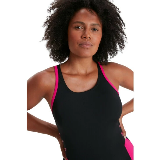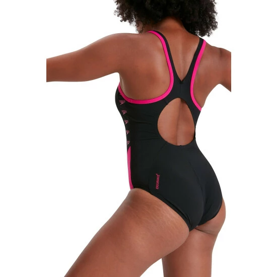 Speedo Black Boom Logo Splice Muscleback Swimsuit