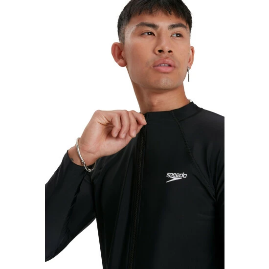 Stylish sun protection swimwear. Come rain or shine, this snug-fit Zip Front Rash Top from Speedo’s Essentials range has you covered. With long sleeves and fabric sun protection of UPF40+, it’s ideal for active beach days spent in and out of the water, and includes a zip-up front for easy changing. Made using Speedo’s ECO EnduraBrite fabric for superb colour performance. Offering higher chlorine resistance than standard swimwear fabrics, it fits like new for longer with CREORA® HighClo™ and is made from 100% recycled materials so it better for the environment too.