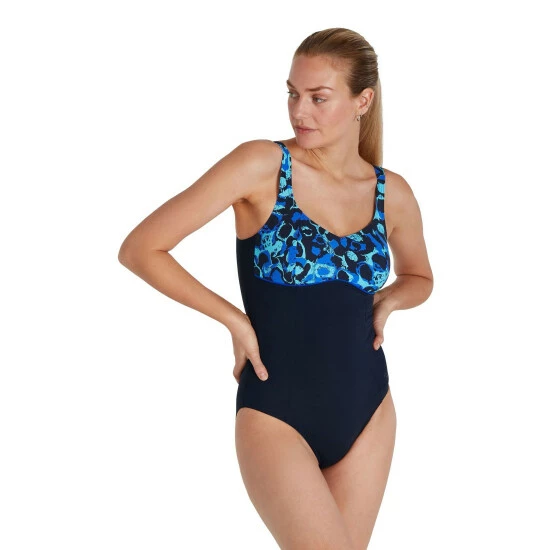 Speedo Blue Contour Lustre Printed Shaping Swimsuit