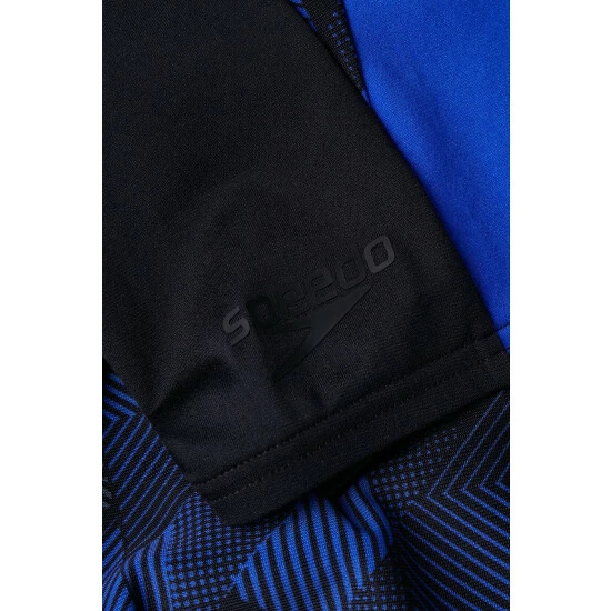 Tech-inspired aesthetics. Cut a streamlined silhouette in training wearing this shorter length mid-jammer, designed with a contrasting blue side panel and 3D-effect geometric print. A drawstring waist allows for an adjustable fit, so you feel comfortable and secure in the pool. Designed to be durable and better for the environment, it’s made from our new ECO Endurance+ fabric, which is 100% chlorine resistant, quick-drying and made from 50% recycled materials.