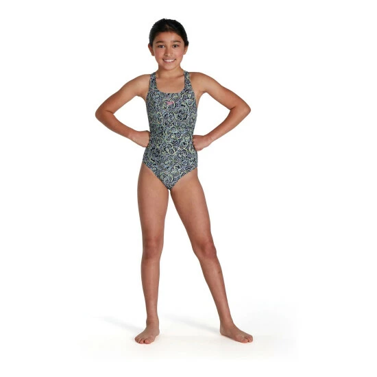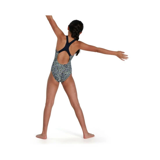 Take on training and lessons wearing this Medalist swimsuit, which features a paisley-style floral print. Perfect for training, the medalist style includes back straps that sit between the shoulders of young swimmers, aiding their movement and flexibility. Made from our soft Endurance10 fabric, it provides higher chlorine resistance than standard swimwear fabrics and fits like new for longer with CREORA® HighClo™.