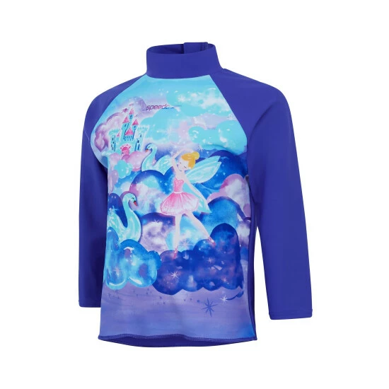 Escape to a mystical land in the sky with our Learn to Swim range. This playful long sleeve printed rash top features a colourful fairytale scene above the clouds. Perfect for sunny holidays and outdoor fun, the top includes UPF40+ fabric sun protection and a dipped back hem for extra coverage. A zip-up back on the top (up to the age of four) allows for easy wet-and-dry changing, while the shape-retaining fabric stretches so little bodies can move around without feeling restricted. Made from our soft Endurance10 fabric, which offers higher chlorine resistance than standard swimwear fabrics and fits like new for longer with CREORA® HighClo™.