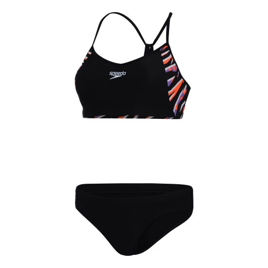 Summer vibes, all-year round. Ideal for sporty beach holidays and lounging by the pool, this sleek black Volley two-piece features splices of our eye-catching tiger-print design. The thin straps offer freedom to move during fun water activities, while the brief’s drawstring waist provides a secure fit. Fully lined, the top includes removable bra pads which shape and support. Our ECO EnduraBrite fabric offers superb colour performance, so you can enjoy the vibrant print for longer. Offering higher chlorine resistance than standard swimwear fabrics, the two-piece fits like new for longer with CREORA® HighClo™ and is made from 100% recycled materials.